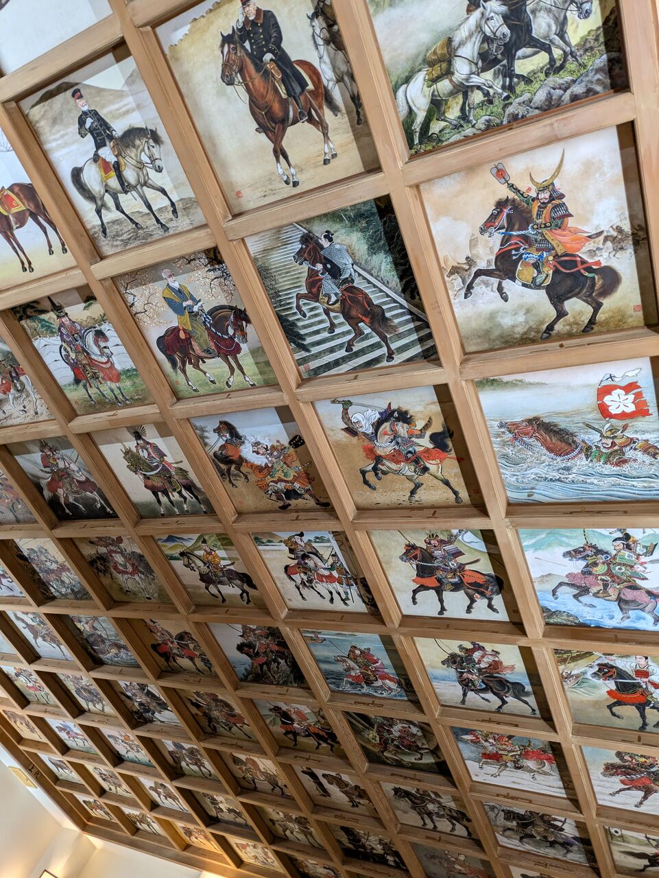 なぜかというと、本殿の天井が↑のように馬の騎乗の絵がずらーっとなっているのです。