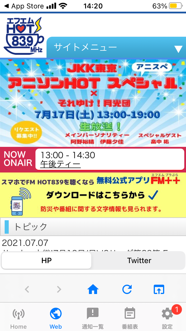スマフォでは専用のアプリから、パソコンでも聴けるようです。
