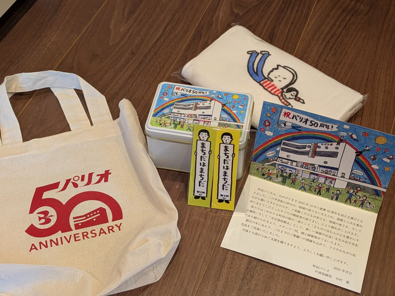 で、感謝だらけの自分ですが、ひとまず今回の展示に際してパリオスタッフの方からパリオの50周年記念品を作ったそうで、それを色々頂きました!お楽しみ袋みたいで、嬉しかった。(笑)
